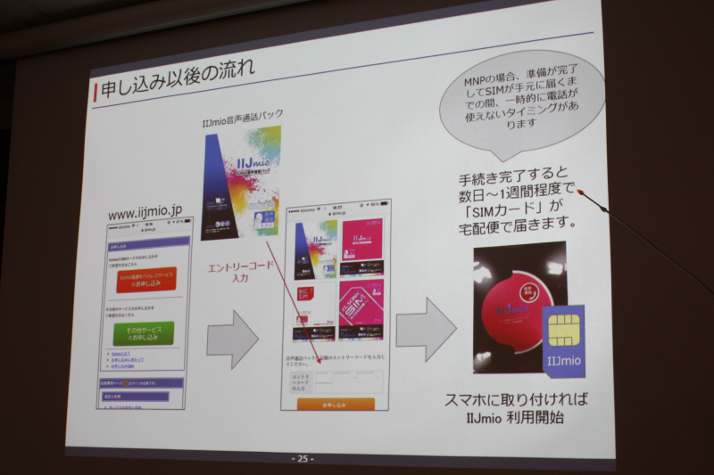 なお、IIJmioには高速データ通信可能な容量の違いで3つのプランが用意されている(堂前氏はこれを牛丼に例えて「並盛り、大盛り、特盛り」と表現していた)が、どのプランを選べばよいか判断がつかない場合「最初は最も安い『ミニマムスタートプラン』で契約して欲しい。1GBの高速通信を使い切っても速度は遅くなるが通信できなくなるわけではないし、次の月になればプラン変更も可能である。無駄に料金を支払っていただく必要はない」(堂前氏)と説明していた。