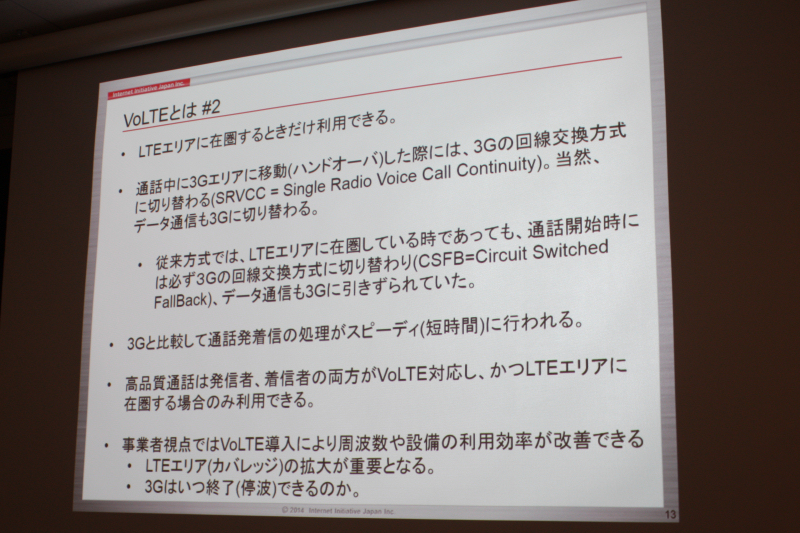 検証結果の説明に続き、VoLTEの解説やVoLTE通信時の端末の挙動も披露された。